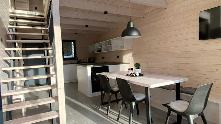 Das Chalet ist klimatisiert und umfasst zwei Schlafzimmer, ein Wohnzimmer sowie eine voll ausgestattete Küche mit Kühlschrank und Kaffeemaschine. Ein Badezimmer mit Dusche und Haartrockner steht ebenfalls zur Verfügung. Kostenloses WLAN ist in der Unterkunft verfügbar.