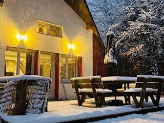Im Chalet gibt es ein Café vor Ort. Außerdem können die Gäste Grillmöglichkeiten nutzen.