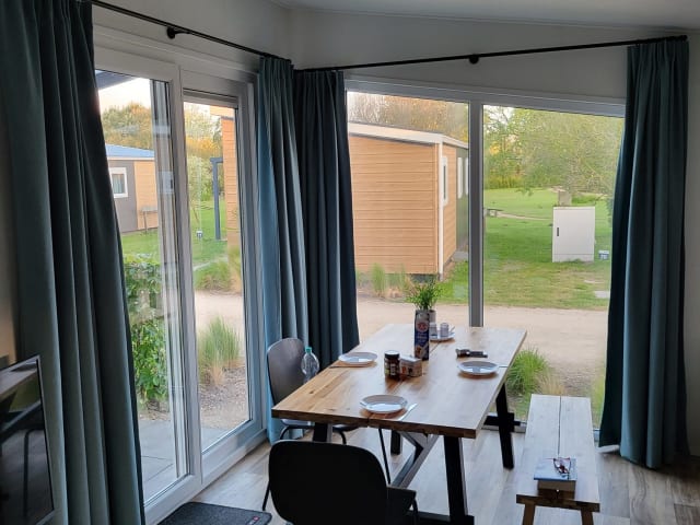 Das Chalet im Holidaypark Fort den Haak Vrouwenpolder verfügt über eine gemütliche Terrasse, auf der Sie sich entspannen und die frische Luft genießen können. Das Apartment ist mit einem TV ausgestattet und verfügt über eine moderne Küche mit einem Kühlschrank, einem Geschirrspüler, einer Mikrowelle und einer Kaffeemaschine. Hier finden Sie alles, was Sie für einen komfortablen Aufenthalt benötigen.