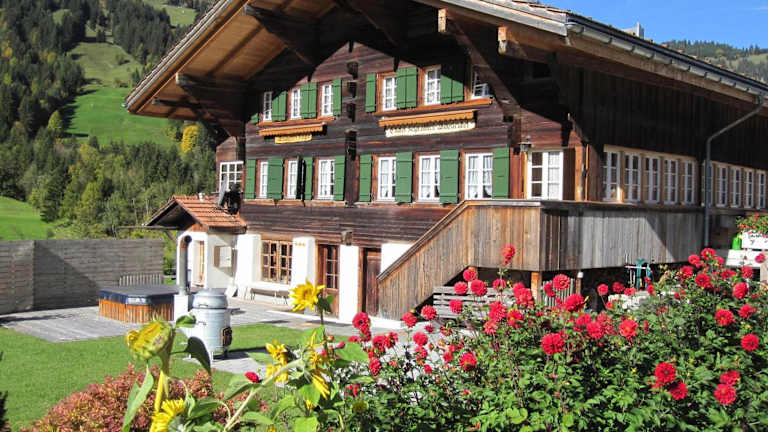 Im charmanten Chalet-Hotel, - dem kleinen Bijou aus dem 16. Jahrhundert , mit Liebe zum Detail renoviert , werden Sie von der Besitzerin persönlich verwöhnt. Die individuell gestalteten Zimmer im gemütlichen Chalet Stil, bieten allen Komfort der heutigen Zeit inkl. WLAN (WiFi). Der traumhafte Panoramablick auf die Bergwelt versetzt Sie gleich in Ferienstimmung. Die kleine Wellnessoase verspricht Entspannung pur, der verlockende Duft aus Grossmutters Küche wahre Gaumenfreude (auf Vorbestellung). Zu den Skigebieten Lenk und Gstaad sind es nur wenige km.