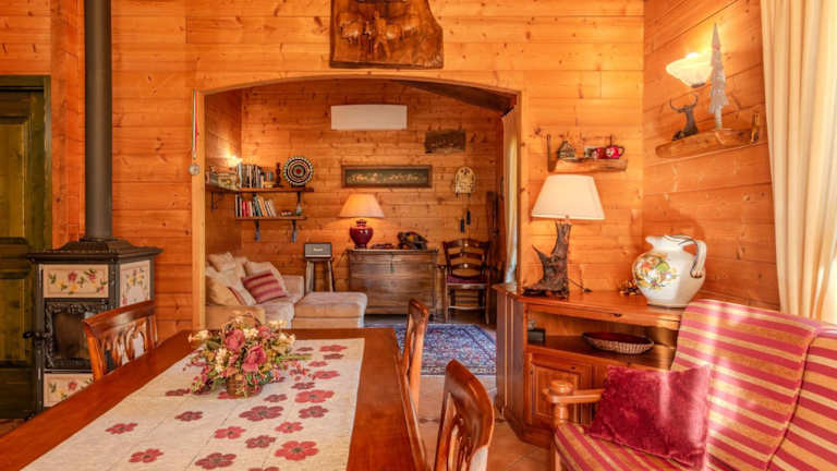 Das Chalet besteht aus zwei Schlafzimmern, einem Wohnzimmer und einer voll ausgestatteten Küche. Zur Ausstattung gehören ein Kühlschrank, eine Kaffeemaschine sowie zwei Badezimmer mit Bidet und Dusche. Ein Fernseher ist ebenfalls vorhanden. Die klimatisierten Räume bieten Platz für die Gäste.