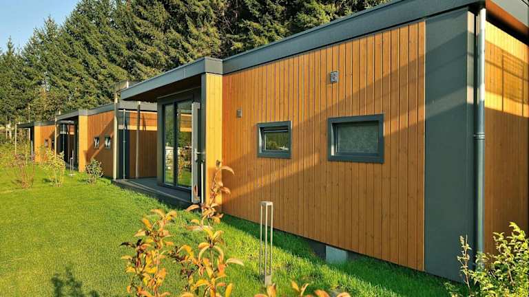 Die Unterkunft bietet einen Sitzbereich, einen TV sowie eine voll ausgestattete Küche, die mit einem Kühlschrank, einem Geschirrspüler, einem Ofen, einer Mikrowelle, einem Toaster und einem Wasserkocher ausgestattet ist. Zudem verfügt das Chalet über ein eigenes Badezimmer mit einer Dusche.