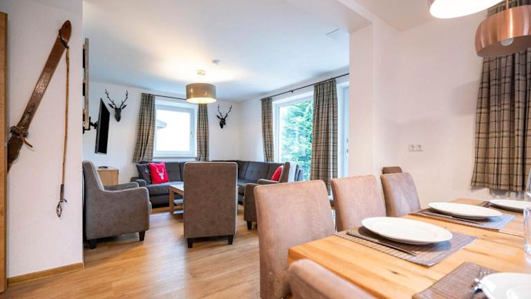 Das Chalet ist ausgestattet mit 7 Schlafzimmern und bietet Platz für eine größere Gruppe von Gästen. Zur Ausstattung gehören ein Wohnzimmer mit TV und eine voll ausgestattete Küche, die unter anderem einen Kühlschrank und einen Ofen umfasst. Die Unterkunft bietet außerdem Zugang zu einer Sauna sowie einen Garten.