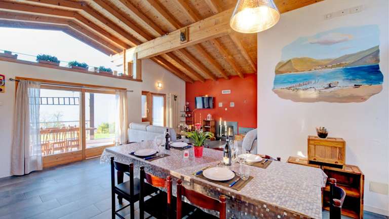Die Villa ist ausgestattet mit 3 Schlafzimmern, 2 Badezimmern, Bettwäsche, Handtüchern, einem TV mit Satellitenkanälen, einer voll ausgestatteten Küche und einer Terrasse mit Blick auf die Berge.