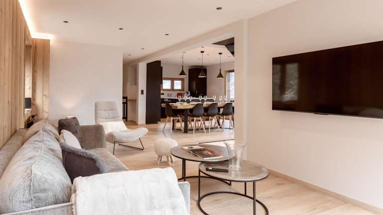 Das Chalet bietet Platz in 4 Schlafzimmern und verfügt über 4 Badezimmer. Zur Ausstattung gehören Bettwäsche, Handtücher, ein TV sowie eine voll ausgestattete Küche. Eine Terrasse mit Bergblick ist ebenfalls vorhanden.