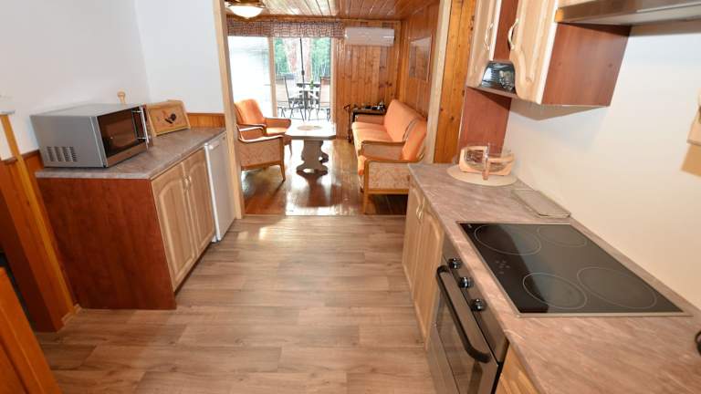 Das klimatisierte Chalet verfügt über 2 Schlafzimmer, ein gemütliches Wohnzimmer und eine voll ausgestattete Küche mit Kühlschrank und Wasserkocher. Das Chalet ist gut gepflegt und bietet Ihnen alle Annehmlichkeiten, die Sie für einen angenehmen Aufenthalt benötigen. Ein TV und kostenfreies WLAN sind ebenfalls vorhanden. Das Badezimmer ist mit einer Dusche ausgestattet.