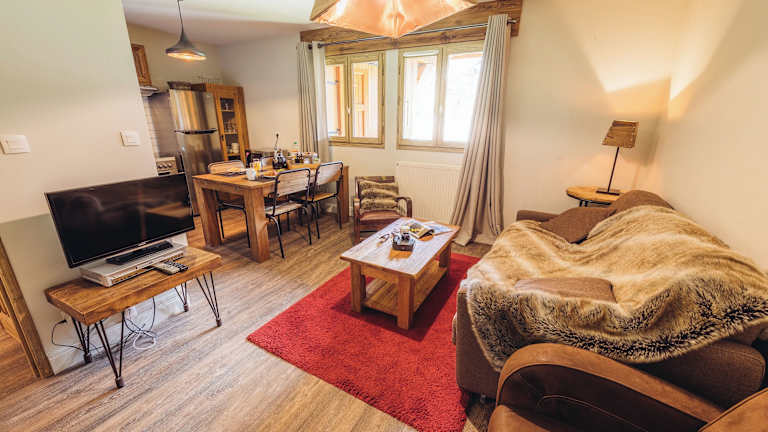 Die Wohnungen sind ausgestattet mit einem Flachbild-TV, einem Balkon und einem eigenen Bad mit Dusche und Badewanne. Die meisten Apartments verfügen über einen Kamin, und von jedem gibt es einen Aussicht auf die Berge oder den Garten.