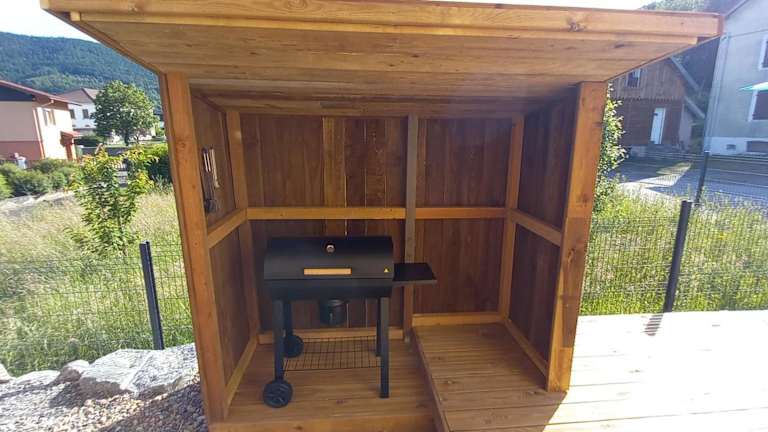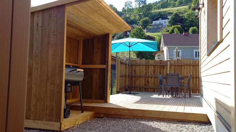 Das Chalet bietet zwei Schlafzimmer, ein Wohnzimmer sowie eine voll ausgestattete Küche mit Kühlschrank und Geschirrspüler. Das Badezimmer ist mit einer Dusche ausgestattet. Handtücher und Bettwäsche werden bereitgestellt, um den Aufenthalt angenehm zu gestalten.