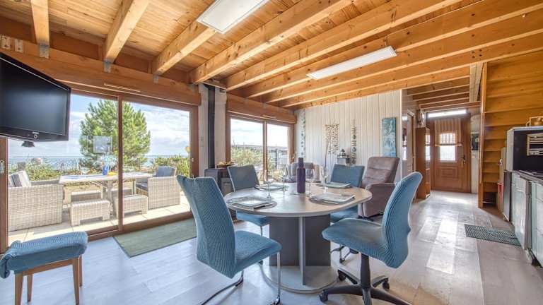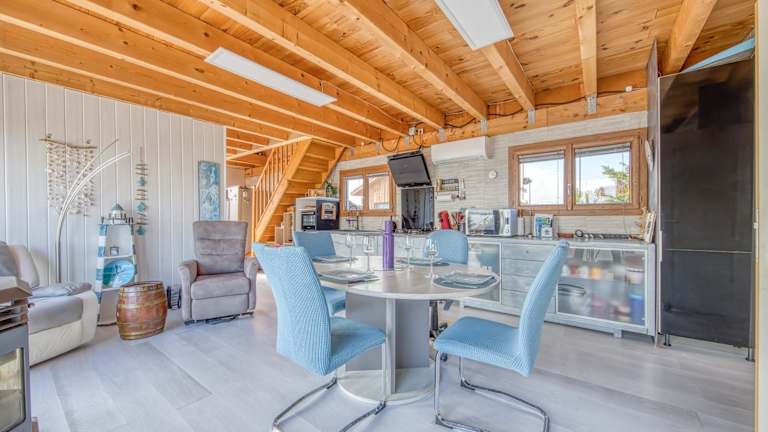 Die Unterkunft Chalet Les Pieds Dans L'eau bietet klimatisierte Räume und befindet sich direkt am Strand. Die Gäste haben Zugang zu einer Veranda/Patioplanung sowie einem Garten, der mit Grillmöglichkeiten ausgestattet ist. Das Ferienhaus verfügt über 3 Schlafzimmer und 1 Badezimmer, ist mit Bettwäsche und Handtüchern ausgestattet und bietet komfortable Annehmlichkeiten für einen angenehmen Aufenthalt.