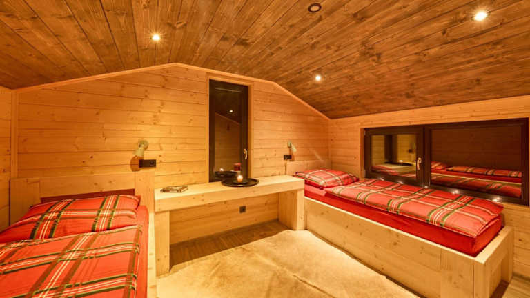 Das Chalet besteht aus zwei Schlafzimmern, einem Wohnzimmer und einer voll ausgestatteten Küchenzeile, die mit einem Kühlschrank und einer Kaffeemaschine eingerichtet ist. Ein Badezimmer mit Dusche und ein TV sind ebenfalls vorhanden. Bettwäsche, Handtücher und Wäsche werden nach den Richtlinien der örtlichen Behörden gewaschen.