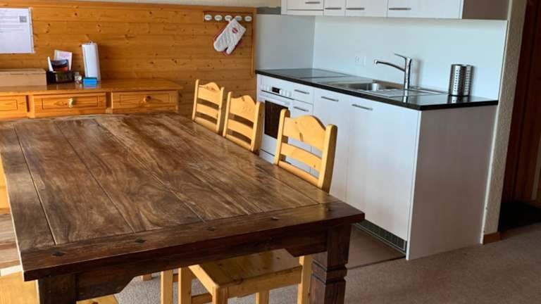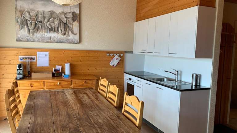 Die Ferienwohnung verfügt über 2 Schlafzimmer, ein Wohnzimmer, einen Flachbild-TV, eine gut ausgestattete Küche mit Kühlschrank und Ofen sowie ein Badezimmer mit Dusche. Zur Ausstattung gehören außerdem ein Balkon mit Bergblick, Handtücher und Bettwäsche.