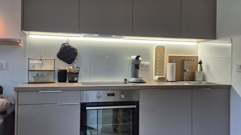 Das Ferienhaus verfügt über ein Wohnzimmer und eine komplett ausgestattete Küche mit Kühlschrank und Ofen. Handtücher und Bettwäsche sind in der Unterkunft bereitgestellt.