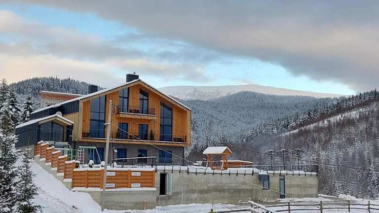 Verbringen Sie einen unvergesslichen Aufenthalt im Chalet Panorama (Апартаменти) in Palyanytsya. Genießen Sie die atemberaubende Aussicht auf die Berge und entspannen Sie im Infinity-Pool. Die geräumigen Apartments bieten modernen Komfort und eine gut ausgestattete Küche. Skifahren und Wandern sind direkt vor der Haustür möglich. WLAN und Parkplätze stehen Ihnen kostenlos zur Verfügung.