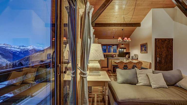Das Chalet Par le Travers liegt in La Tzoumaz im Kanton Wallis. Diese Region ist für ihre beeindruckende Berglandschaft und ihre vielfältigen Freizeitaktivitäten bekannt. Von hier aus können Sie die umliegenden Berge erkunden, wandern, Rad fahren oder im Winter Skifahren. Die Lage des Chalets bietet Ihnen auch die Möglichkeit, die nahe gelegenen Städte Sion und den Mont Fort zu besuchen. Der internationale Flughafen Genf ist nur 157 km entfernt, was die Anreise zum Chalet einfach und bequem macht.