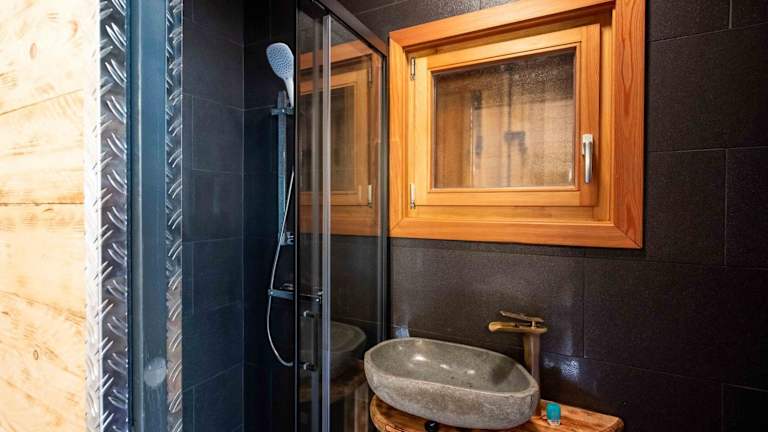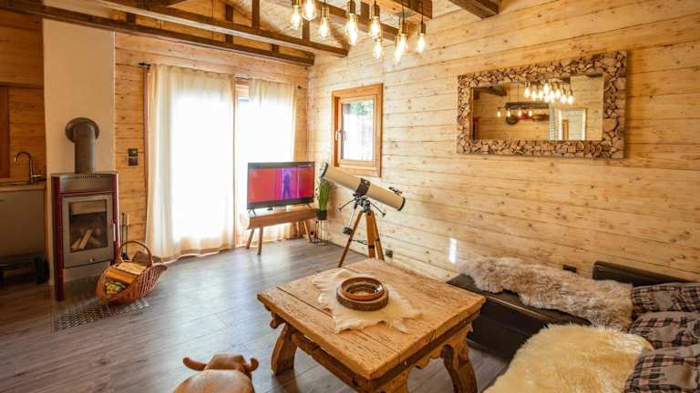 Das Chalet bietet ein Schlafzimmer, ein Wohnzimmer sowie eine voll ausgestattete Küche, die mit einem Kühlschrank und einer Kaffeemaschine ausgestattet ist. Zur weiteren Ausstattung gehört ein Badezimmer mit Dusche und Whirlpool. Handtücher und Bettwäsche werden bereitgestellt, und die Unterkunft verfügt zudem über Klimaanlage.