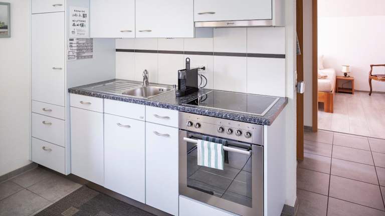 Die Ferienwohnung verfügt über ein Schlafzimmer, ein Wohnzimmer mit Flachbild-TV sowie eine gut ausgestattete Küche, die mit einem Kühlschrank und Geschirrspüler ausgestattet ist. Es gibt ein Badezimmer mit Dusche, und Handtücher sowie Bettwäsche werden bereitgestellt. Die Unterkunft bietet schallisolierte Zimmer und einen Terrassenbereich.
