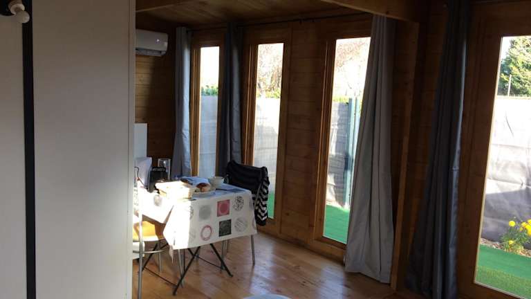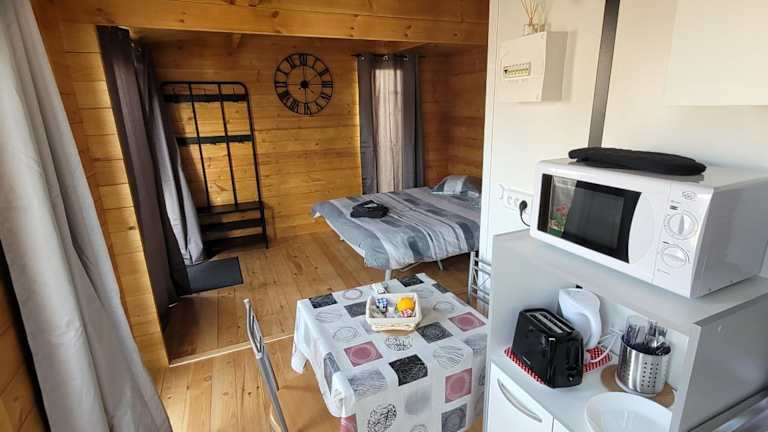 Das Chalet piscine montech verfügt über klimatisierte Unterkünfte mit einem Schlafzimmer, einer voll ausgestatteten Küchenzeile mit Kühlschrank und Backofen sowie einem Badezimmer mit Dusche und Haartrockner. Die Unterkünfte bieten zudem einen eigenen Pool und eine Terrasse mit Blick auf den Pool, was für zusätzlichen Komfort und Entspannung sorgt.