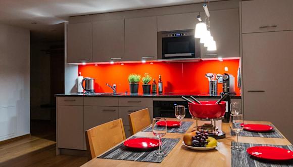 Das Apartment im Chalet Raufthubel bietet einen komfortablen Aufenthalt mit moderner Ausstattung. Genießen Sie den Balkon mit Blick auf die Berge, den gemütlichen Sitzbereich und den Flachbild-Kabel-TV. Die voll ausgestattete Küche verfügt über einen Kühlschrank, einen Geschirrspüler, einen Backofen, eine Mikrowelle, ein Kochfeld, eine Kaffeemaschine und einen Wasserkocher. Das private Badezimmer ist mit einer Dusche und einem Haartrockner ausgestattet. Kostenloses WLAN steht in allen Bereichen der Unterkunft zur Verfügung.