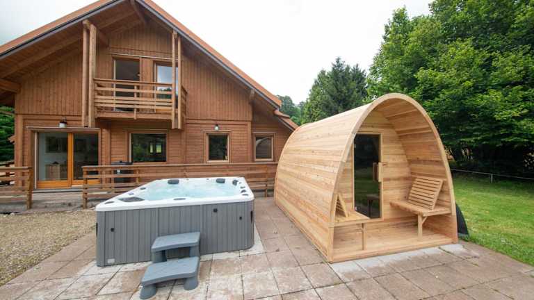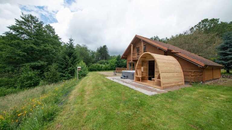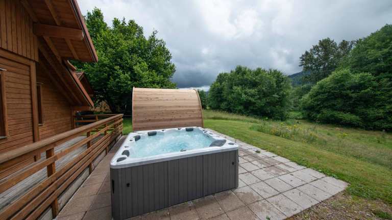 Chalet Sequoia - Spa et Sauna bietet Übernachtungsmöglichkeiten in einem komfortablen Chalet mit Gartenblick. Die Unterkunft verfügt über einen Garten und einen Balkon, die zur Erholung einladen. Gästen stehen eine Terrasse, kostenlose Parkplätze sowie kostenfreies WLAN zur Verfügung.