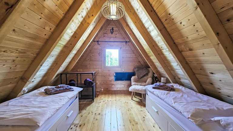 Das Chalet umfasst zwei separate Schlafzimmer, eine voll ausgestattete Küche mit Kühlschrank und Ofen sowie ein Badezimmer. Zudem verfügt die Unterkunft über einen TV und Klimaanlage.