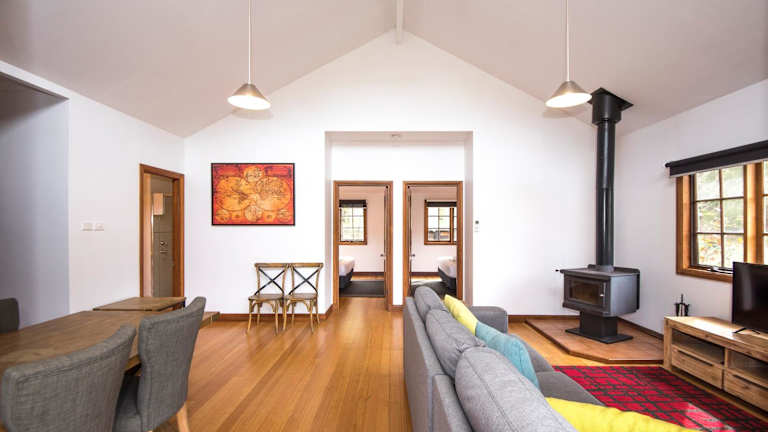 Die Riverglen Chalets bieten stilvoll gestaltete Holzchalets mit modernen Annehmlichkeiten. Jedes Chalet verfügt über eine voll ausgestattete Küche, in der Sie Ihre eigenen Mahlzeiten zubereiten können. Die Chalets sind klimatisiert und mit Heizdecken ausgestattet, um Ihnen auch an kühleren Abenden Komfort zu bieten. Darüber hinaus stehen Ihnen private Grilleinrichtungen zur Verfügung, damit Sie im Freien speisen können. Einige Chalets bieten sogar einen gemütlichen holzbefeuerten Kamin, der für eine besonders behagliche Atmosphäre sorgt.
