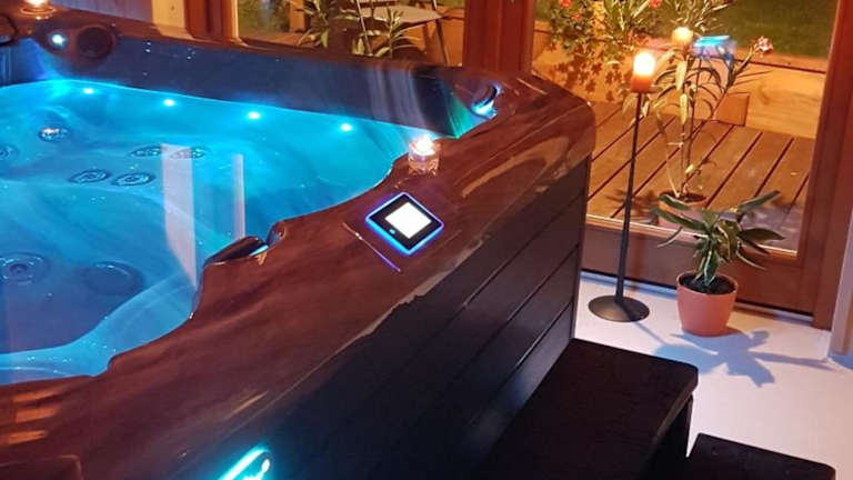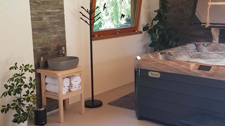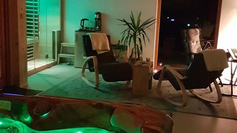 Das Ferienhaus verfügt über ein Schlafzimmer, ein Wohnzimmer und eine voll ausgestattete Küche mit Kühlschrank und Kaffeemaschine. Zusätzlich gibt es ein Badezimmer mit Dusche und Whirlpool. Handtücher und Bettwäsche sind ebenfalls vorhanden.