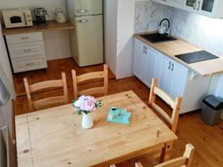 In der Unterkunft befindet sich eine Küchenzeile, die mit Kühlschrank, Mikrowelle, Herdplatte, Toaster und Wasserkocher ausgestattet ist, um Selbstversorgungsmöglichkeiten zu bieten.