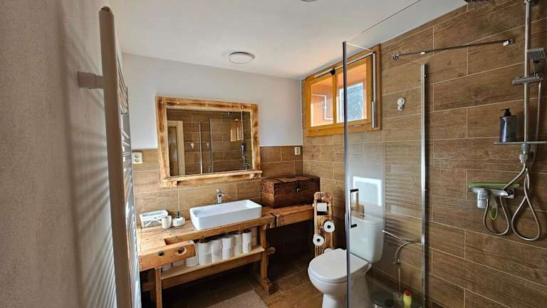 Das Chalet umfasst 2 Schlafzimmer, ein Wohnzimmer sowie 2 Badezimmer mit einer Dusche. Zur Ausstattung gehört außerdem ein Flachbild-TV und eine gut ausgestattete Küche mit Kühlschrank und Geschirrspüler.