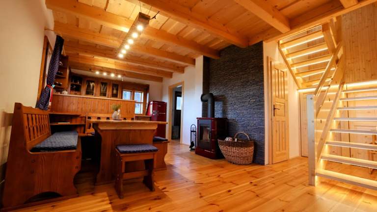 Chalupa Štrčková - srdce Valašska bietet Übernachtungsmöglichkeiten in einem Chalet mit einem Balkon sowie einer Terrasse und Blick auf die Berge. Die Unterkunft verfügt über einen Garten und eine Gemeinschaftslounge, zudem ist kostenloses WLAN verfügbar.