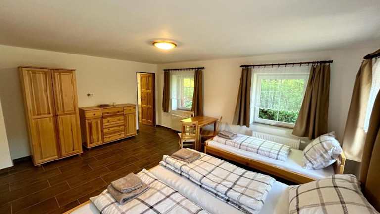 Die Unterkunft befindet sich in Bílý Potok, 38 km von der Todeskurve entfernt. Die Umgebung bietet Zugang zu zahlreichen Freizeitmöglichkeiten wie Skifahren und Fahrradfahren. In der Nähe liegen die Sehenswürdigkeiten Dinopark (41 km), Busbahnhof Szklarska Poręba (42 km) und der Jeschken (43 km). Der Wasserfall Szklarki und der Zackelfall sind jeweils 44 km entfernt. Der nächstgelegene Flughafen ist Pardubice, der 134 km von der Unterkunft entfernt ist.