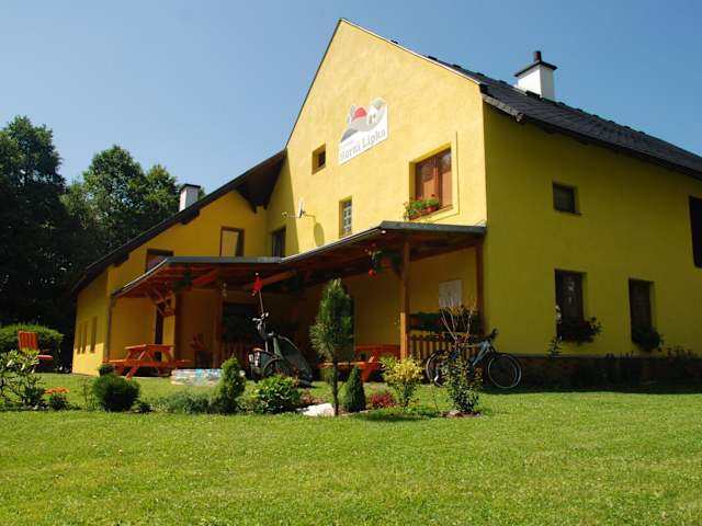 Das Chalupa U Zezulků in Králíky ist ein charmantes Chalet, das sich ideal für einen entspannten Aufenthalt in der Nähe des Papiermuseums Velké Losiny eignet. Mit einem schönen Garten, kostenfreiem WLAN und einer gut ausgestatteten Gemeinschaftsküche bietet das Chalet alles, was Sie für einen angenehmen Aufenthalt benötigen. Aktivurlauber werden die Vielzahl an Freizeitmöglichkeiten wie Wandern, Skifahren und Tischtennis zu schätzen wissen. Das Chalet verfügt über 5 gemütliche Schlafzimmer, ein geräumiges Wohnzimmer und eine Terrasse mit Blick auf die Berge. Eine Sauna steht den Gästen ebenfalls zur Verfügung.