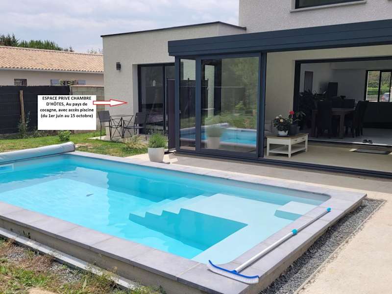 Das Chambre d'hôte, Au pays de cocagne! verfügt über einen saisonalen Außenpool, der Ihnen an warmen Tagen eine erfrischende Abkühlung bietet. Entspannen Sie im schönen Garten oder auf der Terrasse und genießen Sie die Ruhe und Schönheit der Umgebung.