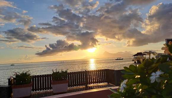 Chambres d'hôtes - Côté mer - Tahiti Sunset Home bietet eine angenehme Atmosphäre mit Annehmlichkeiten wie einem Außenpool, einem Garten und einem eigenen Strandbereich. Die Terrasse und Grillmöglichkeiten laden zu entspannenden Stunden im Freien ein. WLAN und Privatparkplätze stehen kostenfrei zur Verfügung.