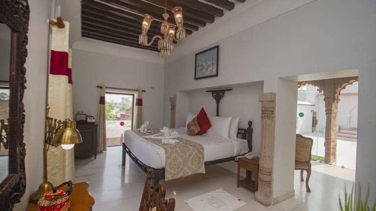 Die klimatisierten Zimmer im Chandra Mahal Haveli sind modern und komfortabel eingerichtet. Sie verfügen über einen Flachbild-Sat-TV, eine Sitzecke und einen Balkon, auf dem Sie die frische Luft und den Ausblick genießen können. Zur Ausstattung gehören auch ein Wasserkocher und eine Minibar. Im eigenen Bad finden Sie eine Dusche, kostenfreie Pflegeprodukte und Hausschuhe.