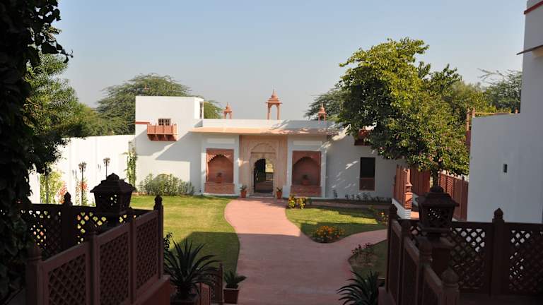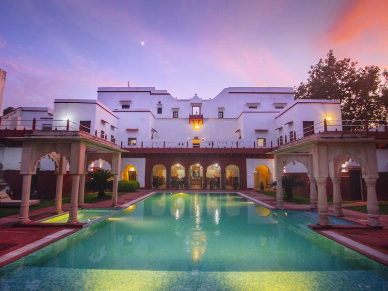Das Chandra Mahal Haveli in Bharatpur ist eine denkmalgeschützte Unterkunft, die mit ihrem Außenpool und dem 24-Stunden-Rezeptionsservice für Komfort und Entspannung sorgt. Die klimatisierten Zimmer sind modern ausgestattet und verfügen über Annehmlichkeiten wie Flachbild-Sat-TV, Sitzecke und Balkon. Das Hotel bietet zudem einen schönen Garten, eine Terrasse und praktische Einrichtungen wie einen Tourenschalter und einen Parkplatz. Das hauseigene Restaurant Peharsi Andaaz verwöhnt Sie mit einer Vielfalt an indischen, regionalen und kontinentalen Gerichten. Genießen Sie Ihre Mahlzeiten auch ganz bequem auf Ihrem Zimmer mit dem Zimmerservice.