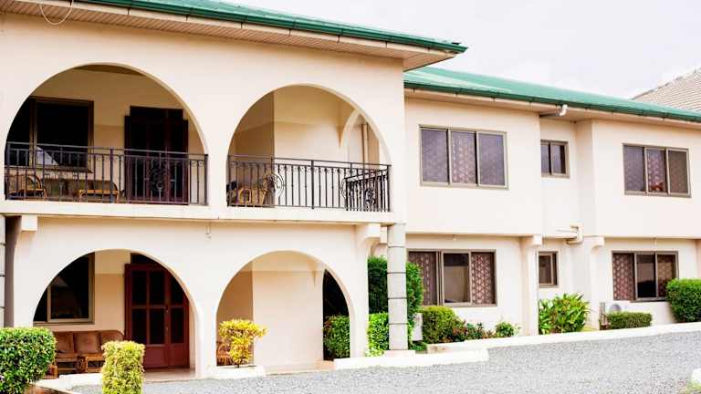 Das Charis Home Services in Accra bietet Ihnen einen angenehmen Aufenthalt mit einem schönen Garten, einer gemütlichen Gemeinschaftslounge und einer einladenden Terrasse. Das kostenfreie WLAN ermöglicht es Ihnen, mit Ihren Lieben in Kontakt zu bleiben. Die Zimmer sind komfortabel eingerichtet und verfügen über ein eigenes Bad sowie eine Klimaanlage. Starten Sie Ihren Tag mit einem köstlichen kontinentalen Frühstück, das Ihnen in der Unterkunft serviert wird. Die zentrale Lage ermöglicht es Ihnen, die Sehenswürdigkeiten von Accra schnell und bequem zu erreichen.