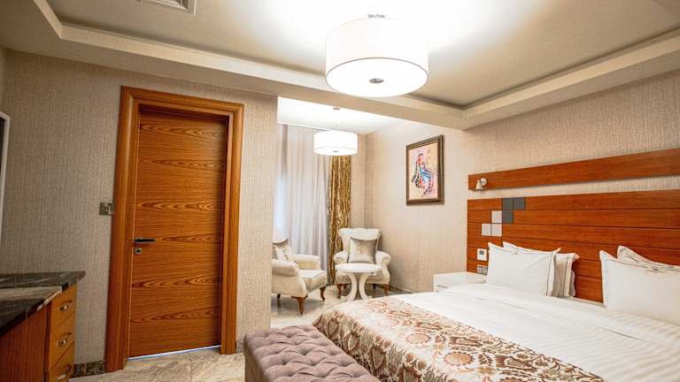 Das Hotel verfügt über das erstklassige Restaurant Eunice, in dem Sie kulinarische Köstlichkeiten genießen können. Die Mmadukaego Bar bietet eine einzigartige Atmosphäre für entspannte Momente und erfrischende Getränke. Der Infinity-Pool mit Bar ist der perfekte Ort, um sich zu entspannen und den Blick auf die Umgebung zu genießen.