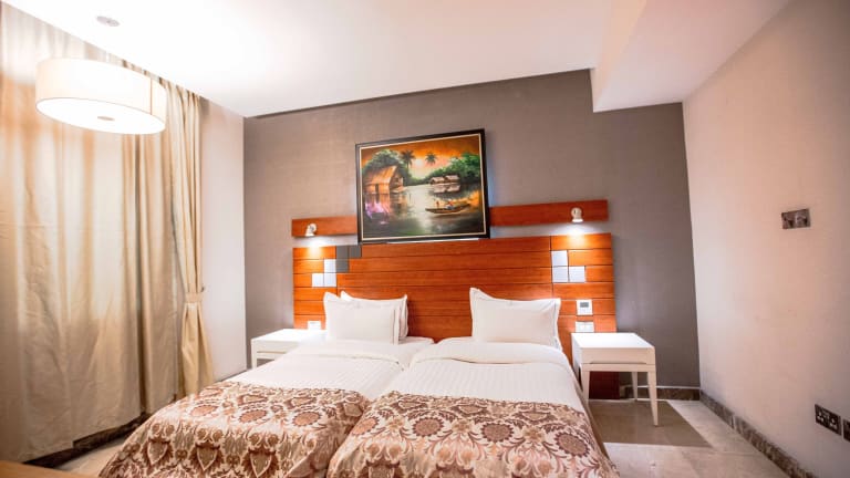 Das Charleson Luxury Hotel in Port Harcourt ist ein herausragendes Boutique-Hotel, das seinen Gästen einen luxuriösen Aufenthalt bietet. Mit seinem eleganten Design, dem erstklassigen Restaurant und der atemberaubenden Infinity-Pool-Bar ist dieses Hotel ein wahrer Traumort für anspruchsvolle Reisende. Die Suiten mit Dachgarten und kostenfreiem WLAN lassen keine Wünsche offen. Genießen Sie den erstklassigen Service und die Sicherheit, die das Hotel bietet, sowie die bequeme Lage in der Nähe des internationalen Flughafens Port Harcourt.