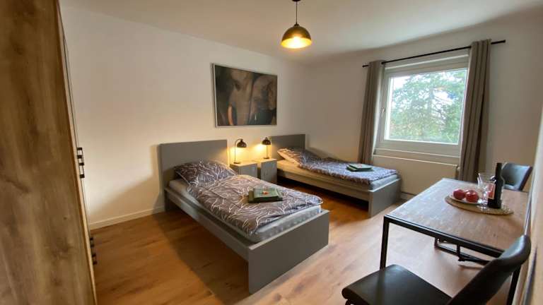 CHARLIE, Solingen Mitte, Ferien/Messe Wohnung für bis zu 5 Personen bietet Übernachtungsmöglichkeiten mit Gartenblick und kostenlosem WLAN. Die Wohnung ist für 5 Personen ausgelegt und umfasst moderne Annehmlichkeiten.