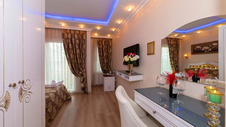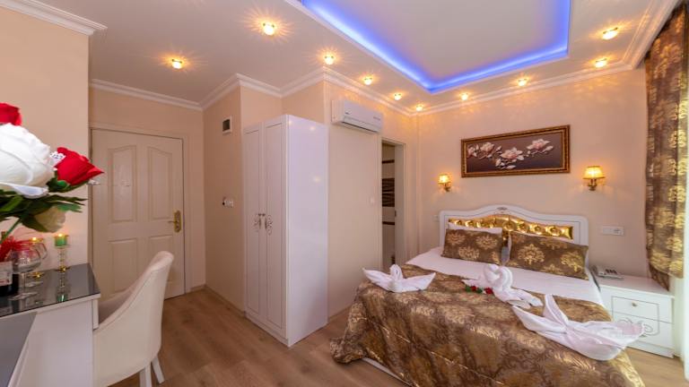 Das Charm Hotel in Istanbul ist eine ideale Wahl für Reisende, die den historischen Stadtteil Sultanahmet erkunden möchten. Mit stilvollen Zimmern, kostenfreiem WLAN und einem freundlichen Service bietet das Hotel einen angenehmen Aufenthalt. Genießen Sie das Frühstücksbuffet und die abwechslungsreiche türkische Küche im Restaurant mit Terrasse und Blick auf die Blaue Moschee. Die zentrale Lage ermöglicht es Ihnen, die wichtigsten Sehenswürdigkeiten, Einkaufszentren und Restaurants bequem zu Fuß zu erreichen.