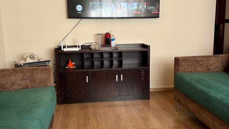 Die Ferienwohnung umfasst zwei Schlafzimmer, ein Wohnzimmer, einen Flachbild-TV und eine Klimaanlage.
