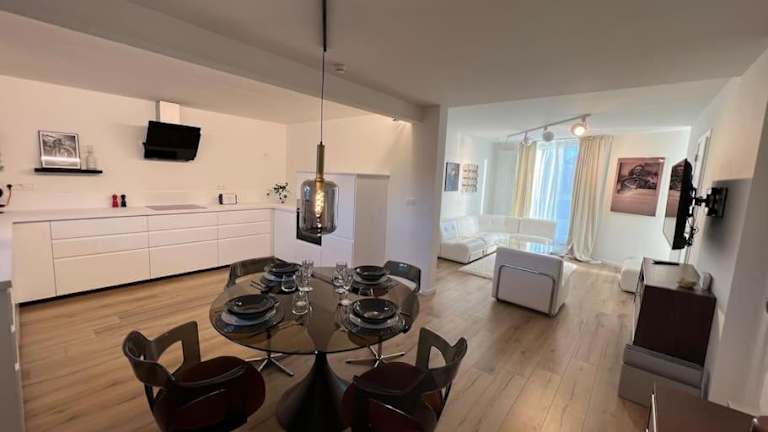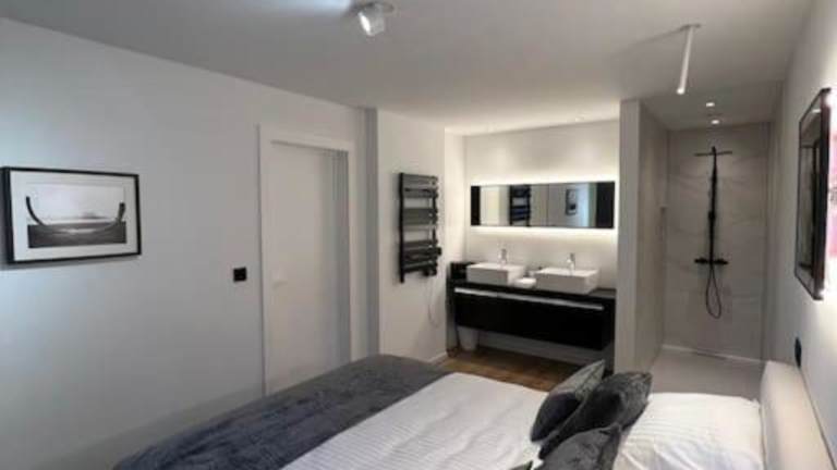 Die Unterkunft beinhaltet ein Schlafzimmer, einen Flachbild-TV und eine Küche mit einem Geschirrspüler, einem Ofen, einer Waschmaschine und einer Mikrowelle. Handtücher und Bettwäsche werden bereitgestellt.