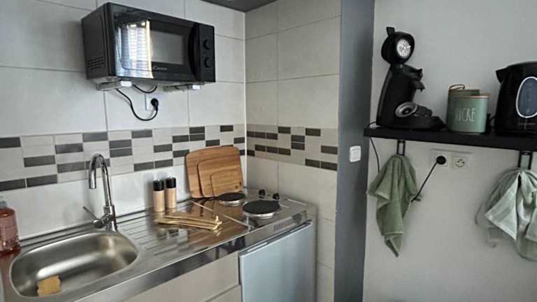Das Studio verfügt über ein Schlafzimmer und ist ausgestattet mit einem Wohnzimmer, das einen Flachbild-TV bietet. Zur Ausstattung gehört zudem eine voll ausgestattete Küche mit Kühlschrank.