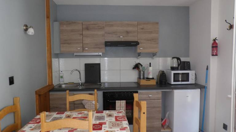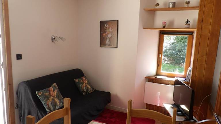 Die Ferienwohnung verfügt über ein Schlafzimmer, ein Wohnzimmer, einen Flachbild-TV und eine gut ausgestattete Küche mit Kühlschrank und Ofen. Zudem gibt es ein Badezimmer mit Dusche. Handtücher und Bettwäsche werden bereitgestellt. Weitere Annehmlichkeiten umfassen eine Terrasse mit Blick auf die Berge und WLAN in allen Bereichen.