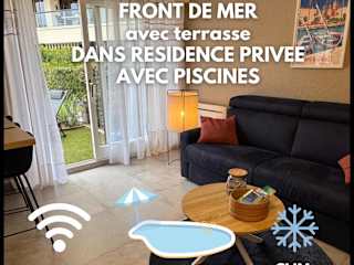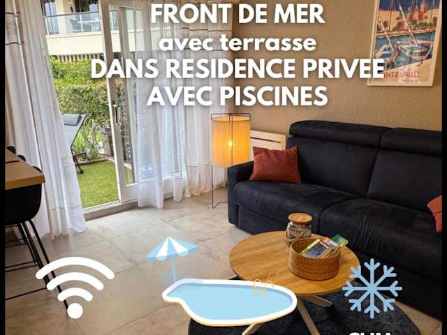 Charmant studio avec terrasse, front de mer et proche du centre bietet Übernachtungsmöglichkeiten direkt am Strand mit einem saisonalen Außenpool und einem Casino. Es handelt sich um eine von einem privaten Gastgeber geführte Ferienwohnung, die Nichtraucherzimmer bereitstellt. Die Unterkunft ist für Erwachsene ab 24 Jahren zugänglich und keine Feierlichkeiten sind gestattet.