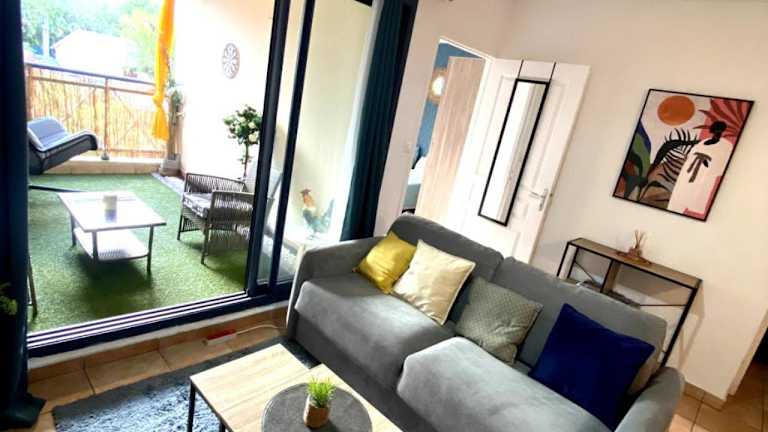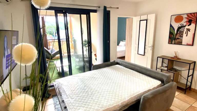 Charmant T2 - Moufia Sainte-Clotilde vue Mer & Montagne bietet eine komfortable Unterkunft mit Stadtblick, einem Balkon und einer Terrasse. Es stehen kostenfreie Privatparkplätze zur Verfügung.