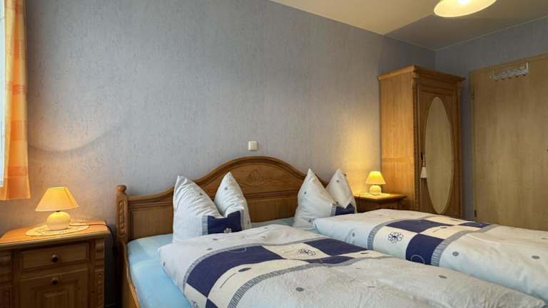Die Ferienwohnung umfasst zwei Schlafzimmer, ein Badezimmer mit Dusche, eine gut ausgestattete Küche mit Kühlschrank und Geschirrspüler sowie einen TV mit Kabelkanälen. Handtücher und Bettwäsche werden zur Verfügung gestellt.