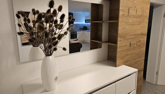 Die Ferienwohnung verfügt über ein Schlafzimmer, ein Wohnzimmer sowie eine voll ausgestattete Küche mit Kühlschrank und Kaffeemaschine. Zudem gibt es ein Badezimmer mit Dusche und Haartrockner. Handtücher und Bettwäsche werden bereitgestellt.