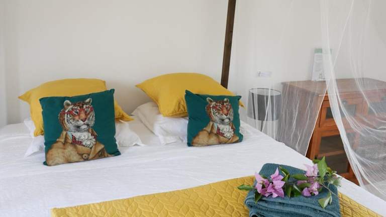 Die Villa verfügt über einen eigenen Strandbereich, in dem Sie entspannen und die Sonne genießen können. Der Garten lädt ebenfalls zum Verweilen ein. In der Umgebung gibt es zahlreiche Aktivitäten wie Schwimmen, Schnorcheln und Wandern, die Ihnen ein abwechslungsreiches Freizeitangebot bieten.