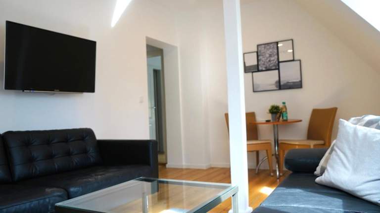 Das Apartment besteht aus einem Schlafzimmer, einem Wohnzimmer sowie einer voll ausgestatteten Küche mit Kühlschrank und Kaffeemaschine. Ein Badezimmer mit Dusche und Haartrockner ist ebenfalls vorhanden. Handtücher und Bettwäsche werden bereitgestellt.